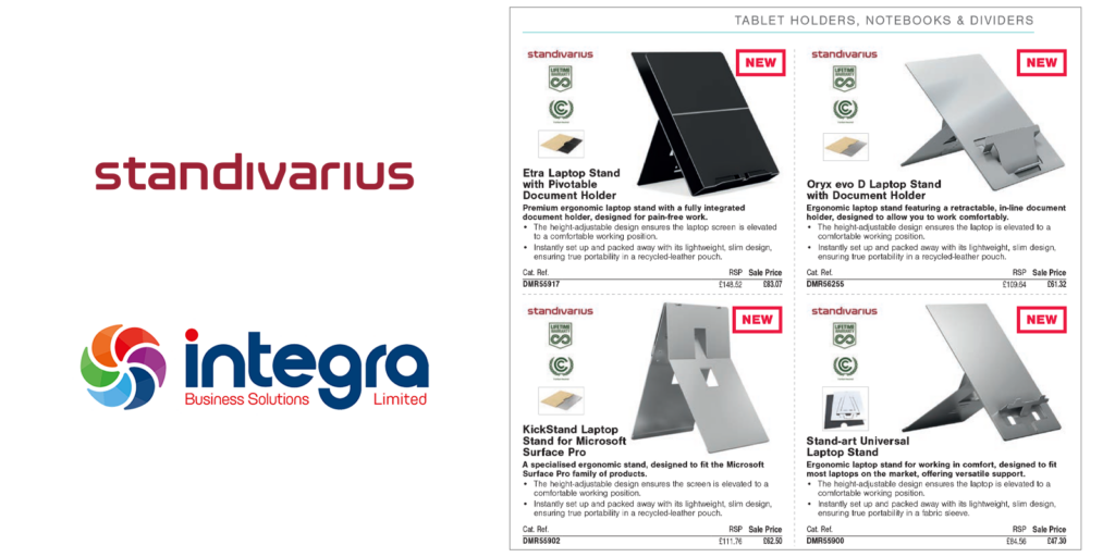 United Kingdom, March 18, 2025 – Standivarius, a leading provider of mobile ergonomic workspace solutions, is proud to announce its new supplier partnership with Integra Business Solutions, one of the UK’s largest independent dealer group for business supplies. Through this collaboration, Standivarius will supply four of its high-quality ergonomic laptop stands via VOW Wholesale, while also offering its full portfolio directly to Integra dealers.Â